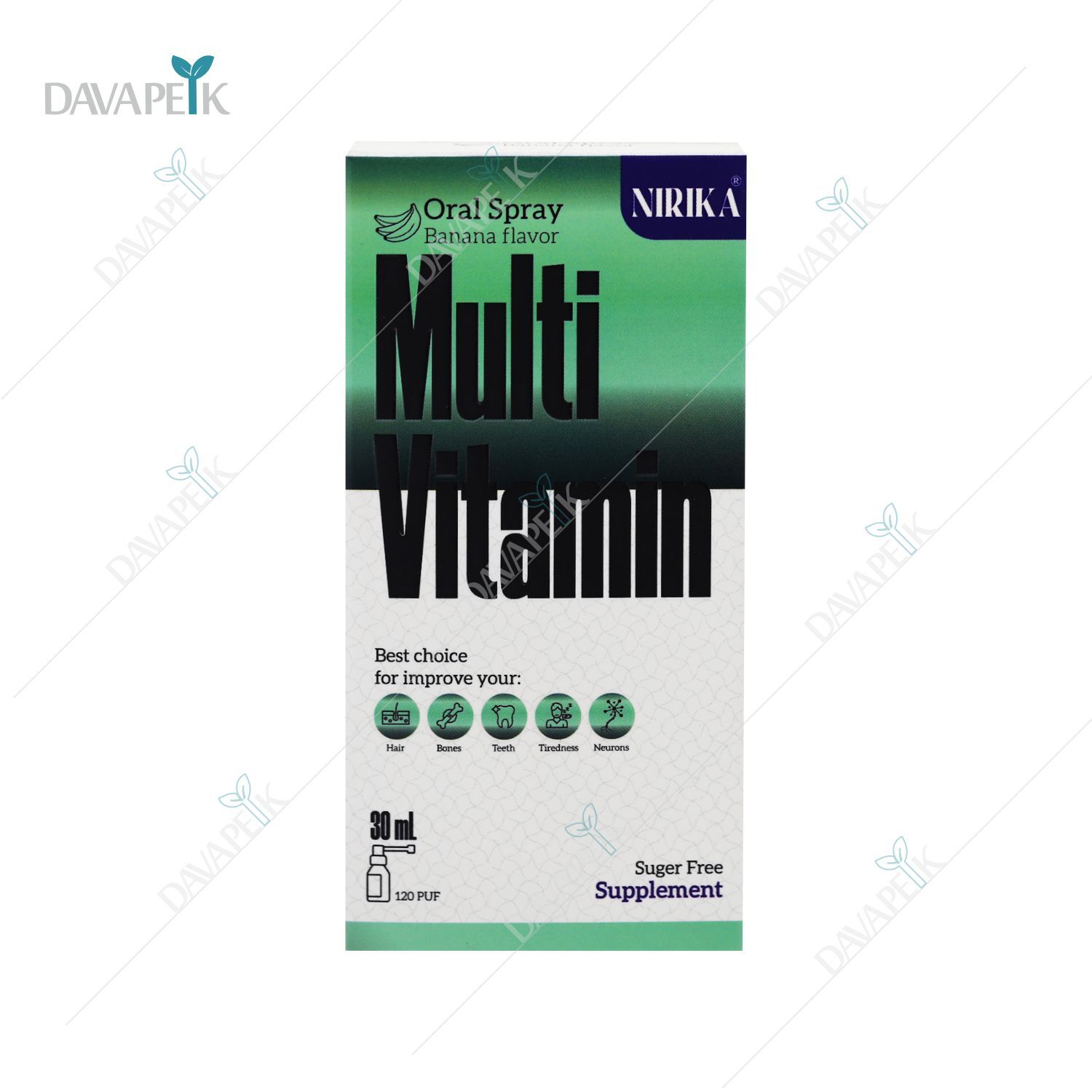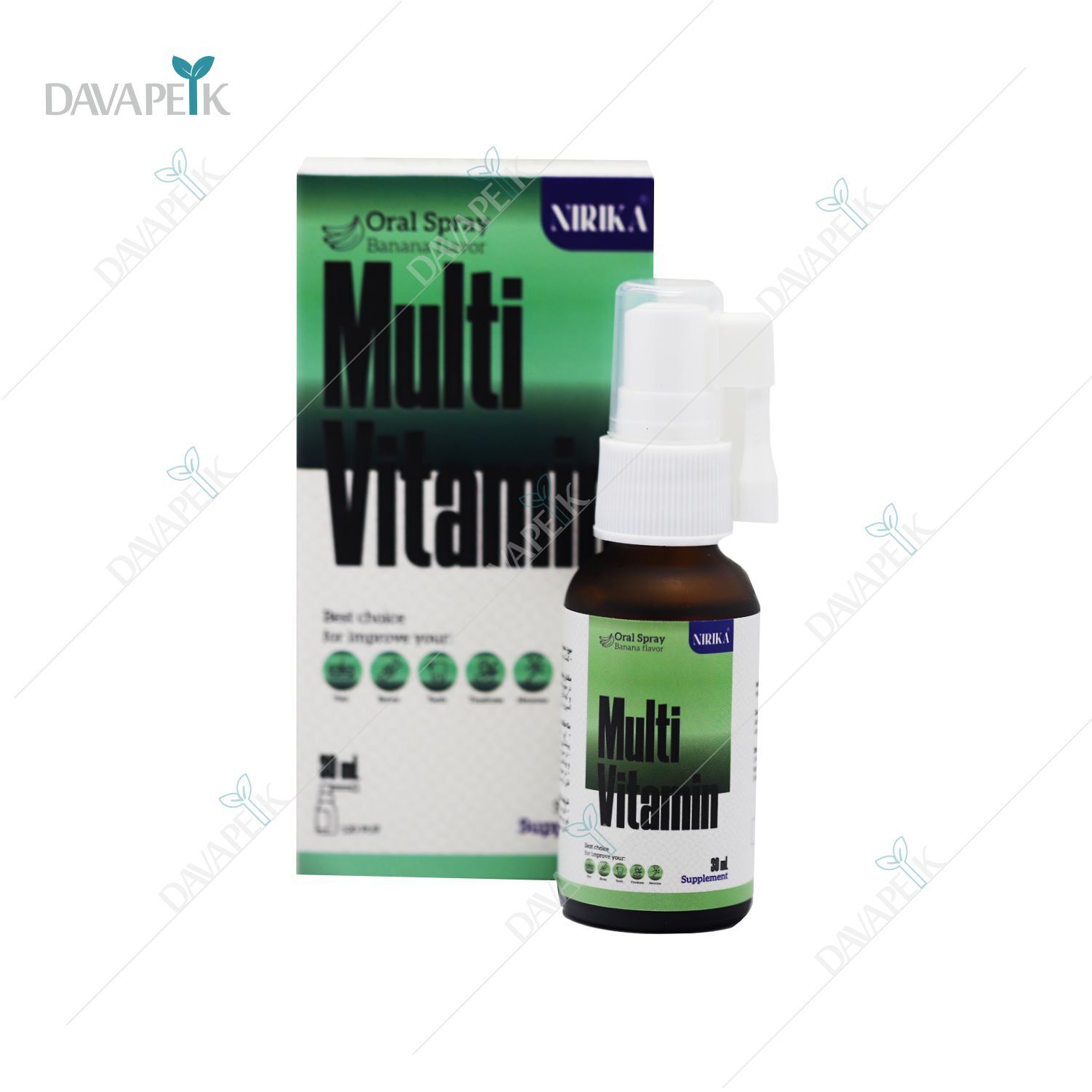 - Nirika Multi Vitamin Oral Spray شامل ویتامین های گروه B ، ویتامین C ، A و ..... می باشد .