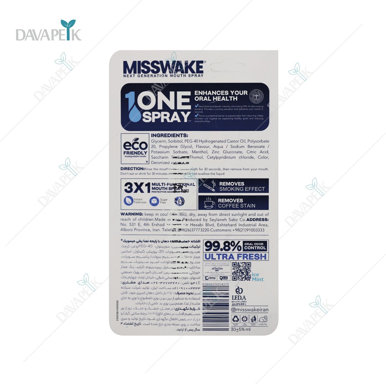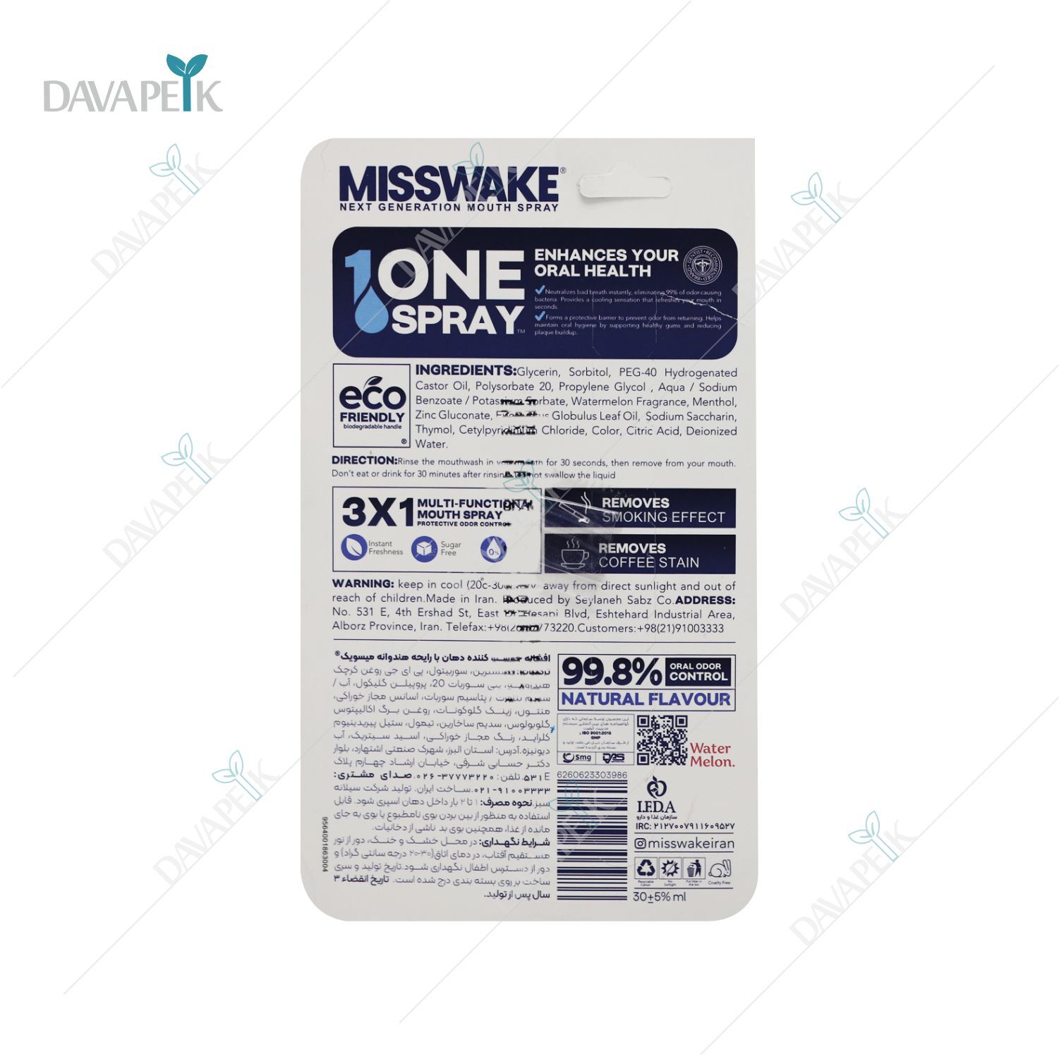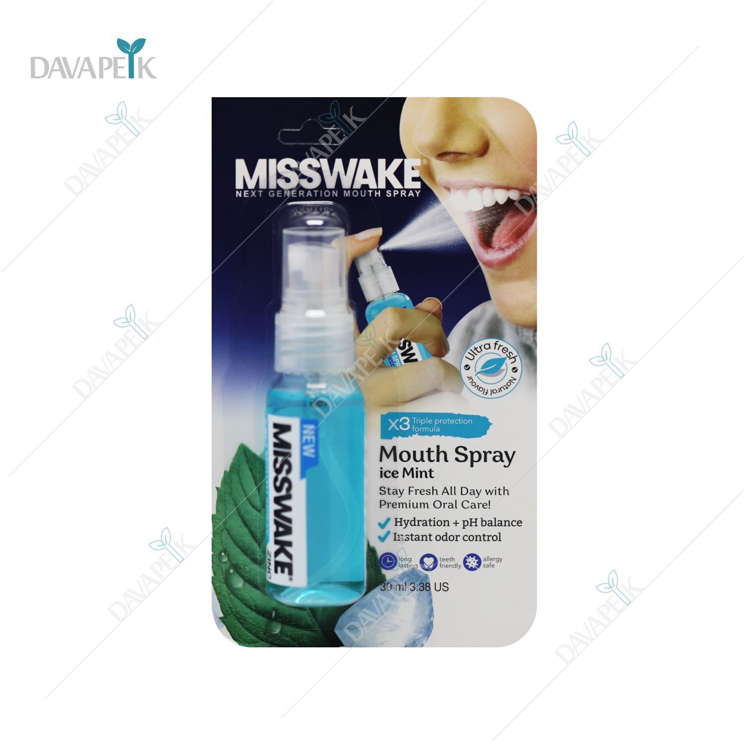- Misswake Mouth Spray با حس طراوت و خنکی در دهان باعث تنظیم PH دهان می شودو کل روز دهان را خوشبو نگه می دارد.