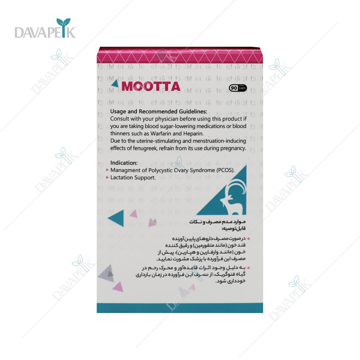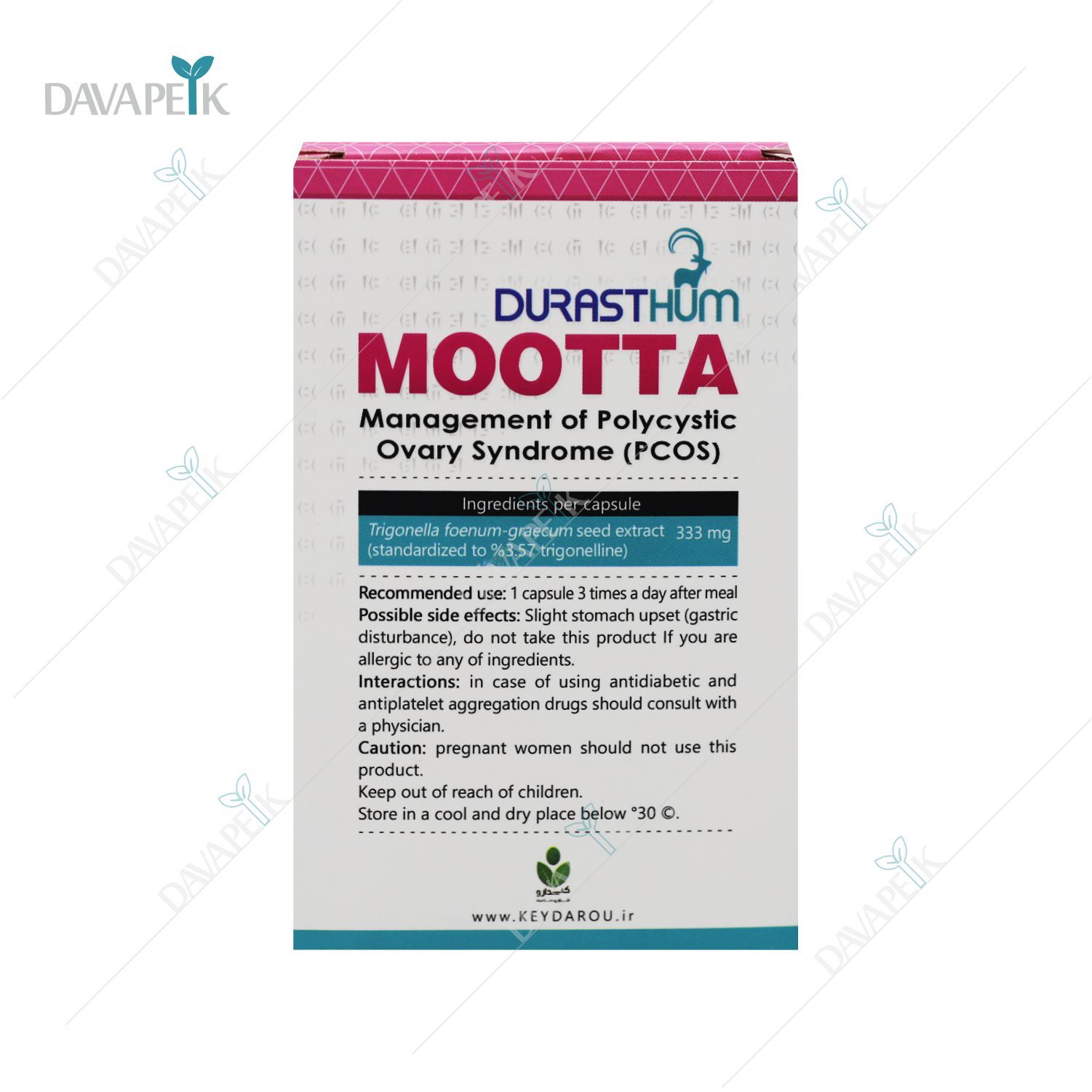 - موتا با شکل دارویی کپسولی با بهبود عملکرد تخمدان و کاهش مقاومت به انسولین، به تنظیم چرخه قاعدگی و کاهش عوارض سندرم پلیکیستیک کمک میکند.