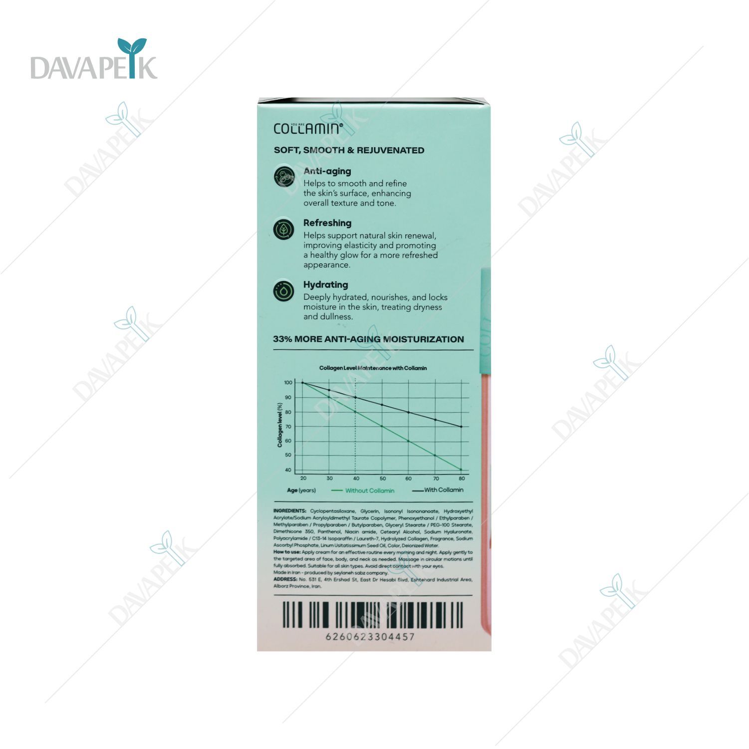 - Collamin Collagen And Moisturizer Cream پرکننده خطوط ریز و چین و چروک بوده و با مرطوب کنندگی بالا پوست را از خشکی نجات می دهد.
