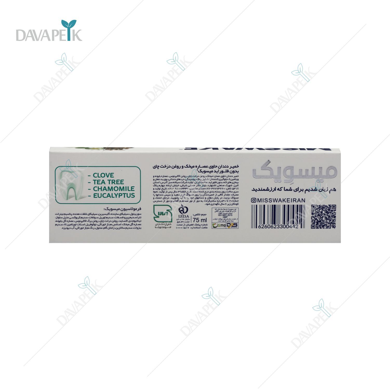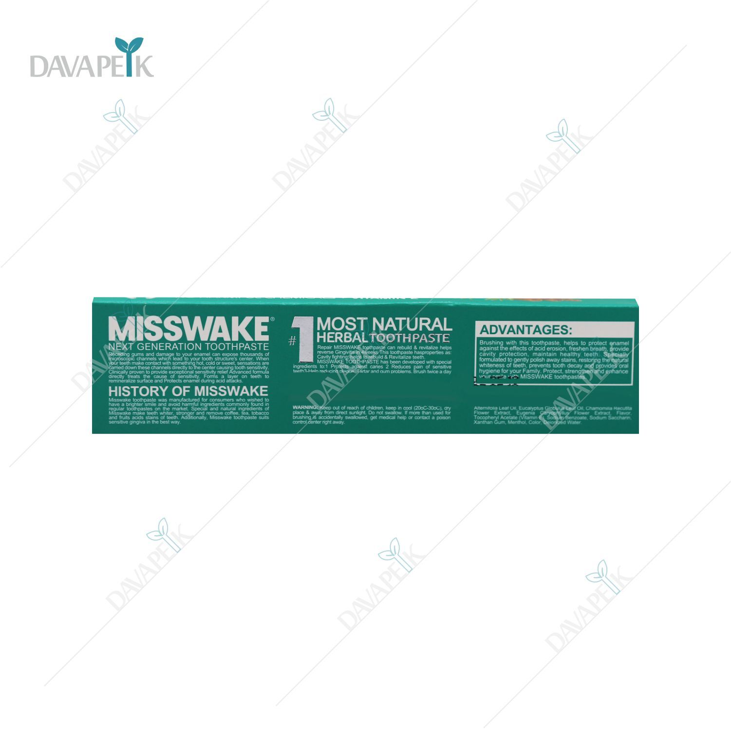 - خمیردندان گیاهی فاقد فلوراید میسویک Misswake Herbal Fluride Free Tootphaste از تشکیل پلاک ، پوسیدگی و دردهای دندانی جلوگیری می کند.