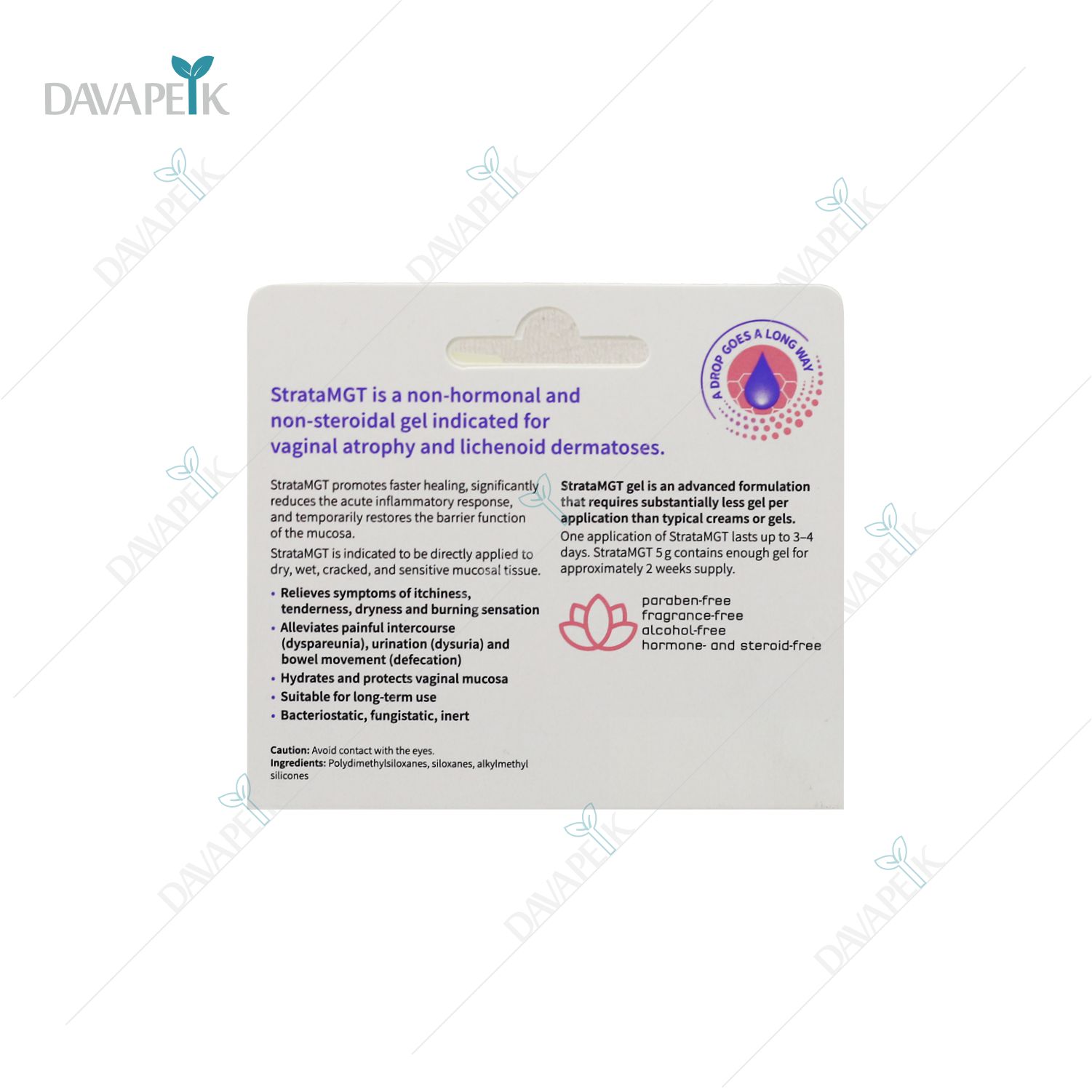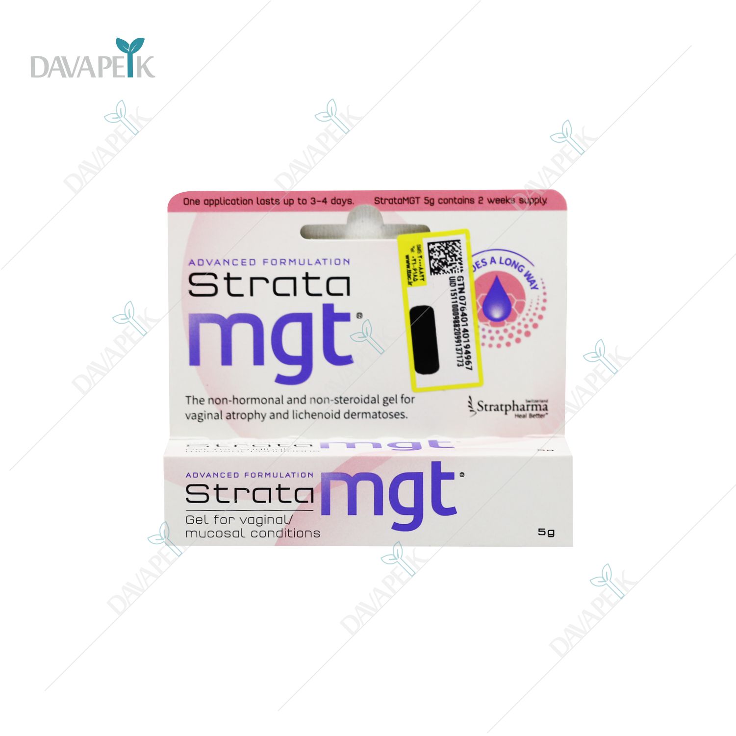 - Strata MGT Gel For Vaginal 5Gr ژل استراتا ام جی تی برای خانمهایی که دچار خشکی واژن، حساسیت، زخمهای کوچک، سوزش بعد از رابطه، آسیبهای پس از زایمان یا تحریک ناشی از لباس تنگ هستند، بسیار مؤثر است.