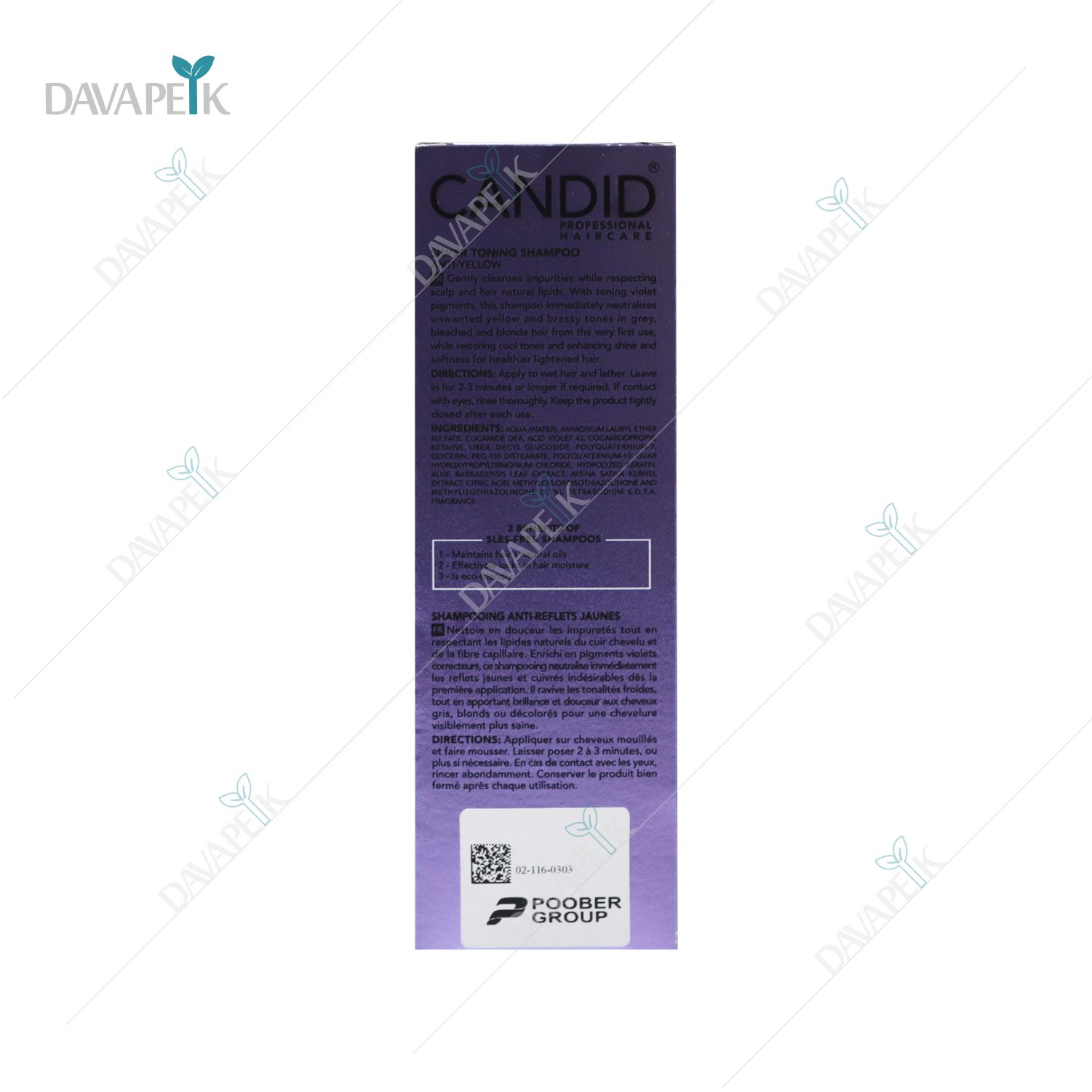 - Candid Silver Toning Shampoo فرمول این شامپو غنی از رنگدانههای بنفش و ترکیبات نرمکننده گیاهی است که بدون آسیب به ساختار مو، رنگ مو را متعادل کرده و درخشندگی طبیعی آن را بازمیگرداند.