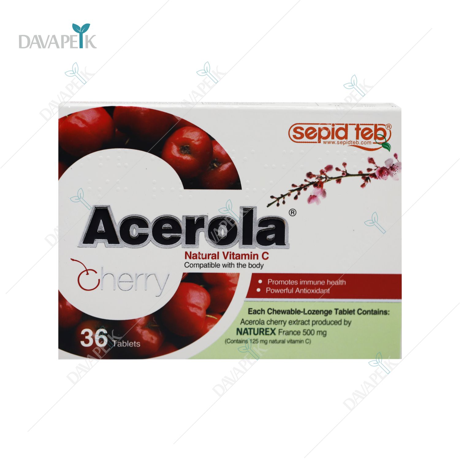 - Sepid Teb Acerola Cherry Natural Vitamin C Chewable Tablets که به تقویت سیستم ایمنی، افزایش انرژی، بهبود سلامت پوست و کاهش خستگی کمک میکند. مناسب افرادی که به دنبال ویتامین ث طبیعی و جذب بهتر هستند.