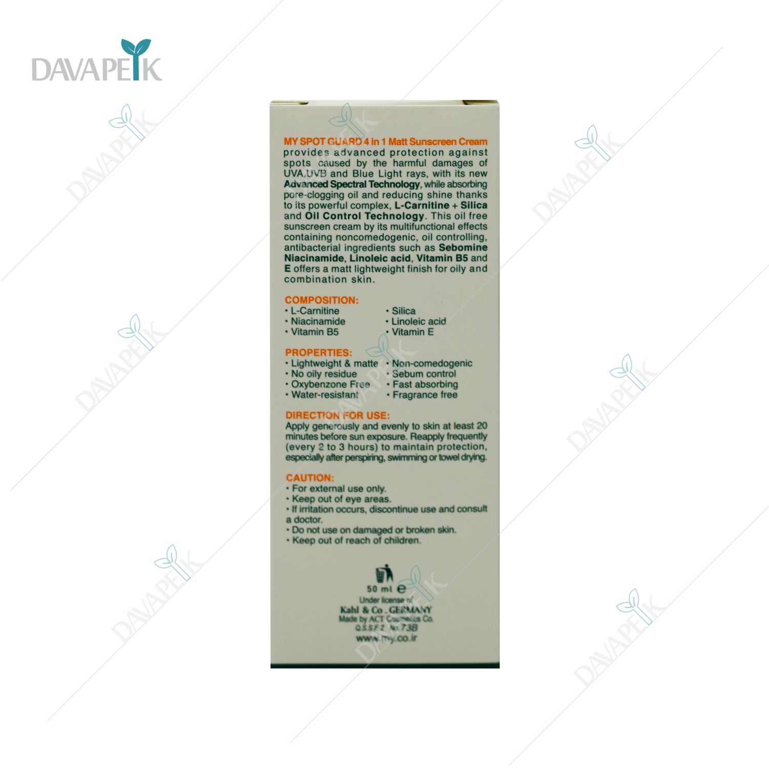 - My Sunscreen Spf 50 Spot Guard Cream Oil Free با ترکیبات کنترلکننده چربی، به کاهش براقیت، جلوگیری از انسداد منافذ و جلوگیری از ایجاد جوش کمک میکند.