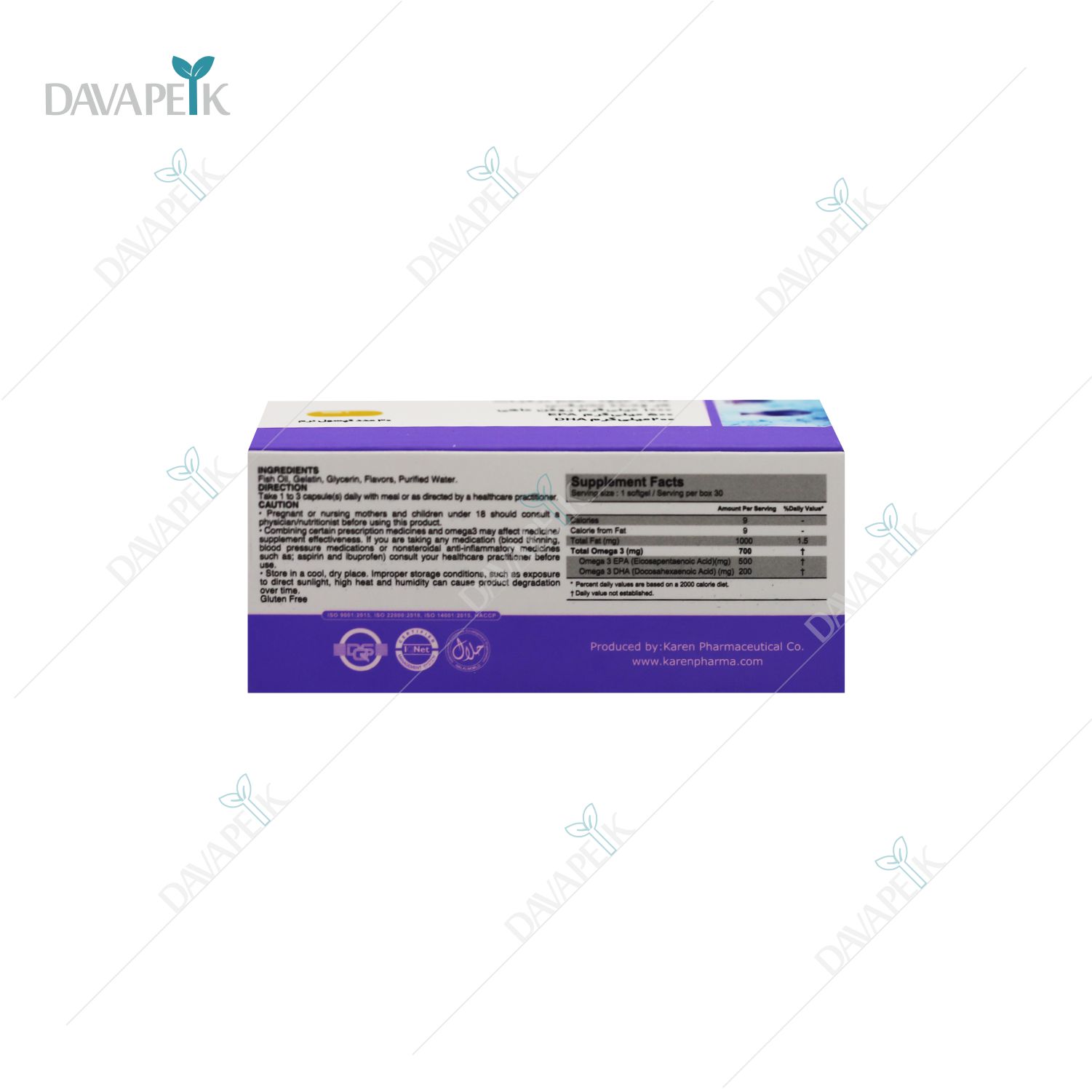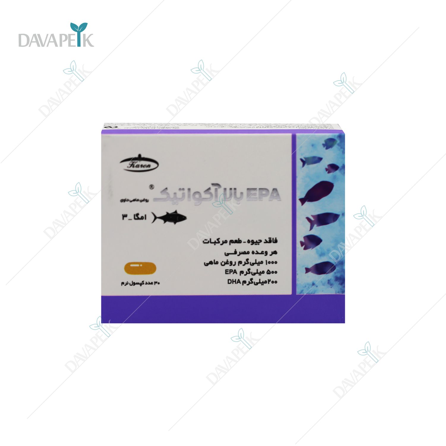 - Karen High EPA Quatic Softgel Capsules مهمترین اسید چرب برای کاهش التهاب، کاهش درد مفاصل، تنظیم تریگلیسیرید و سلامت قلب است. DHA نیز در کنار EPA به بهبود تمرکز، عملکرد مغزی، تقویت بینایی و کاهش استرس کمک میکند.