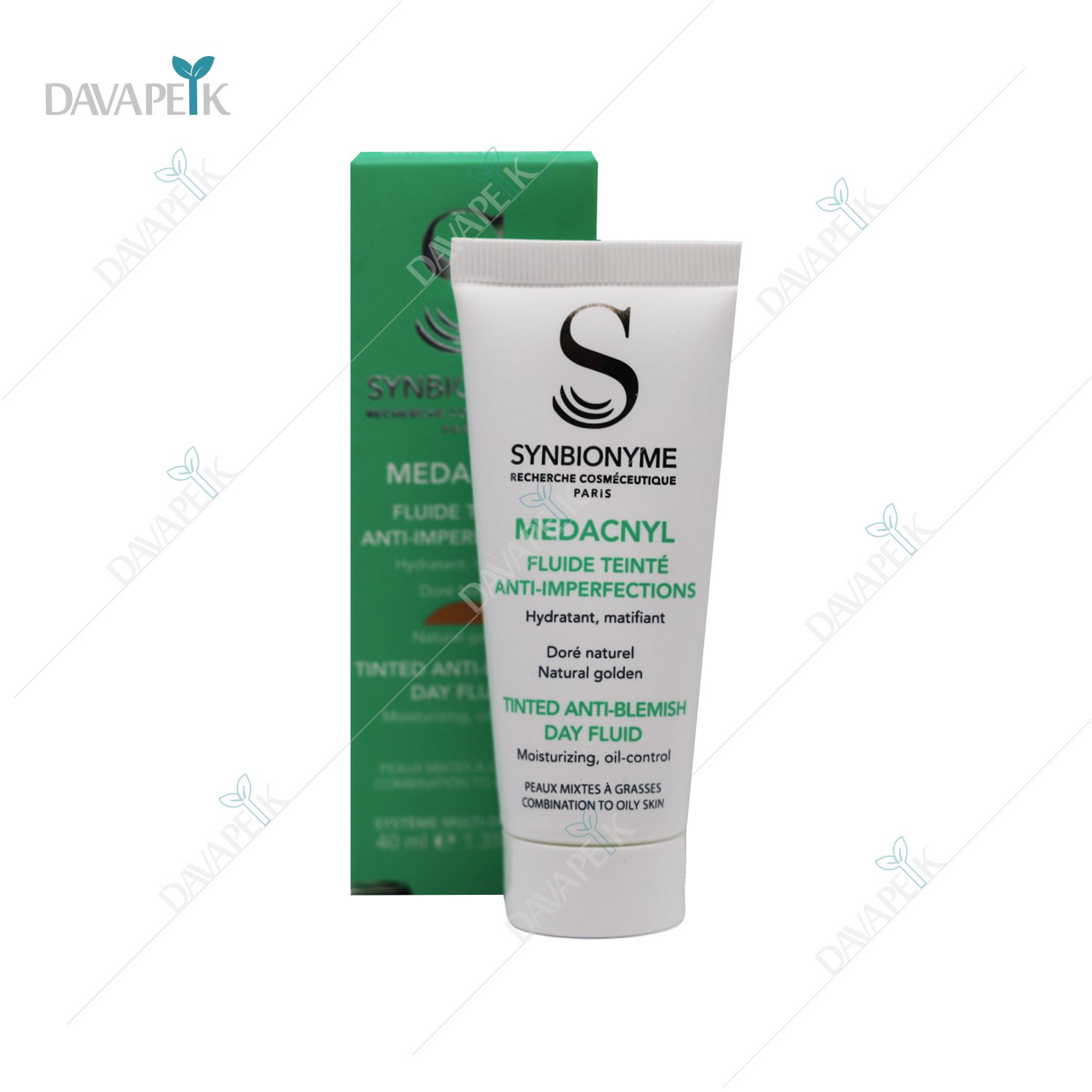 - Synbionyme Medacnyl Fluid Natural Golden Cream با خاصیت مات کنندگی پوست و کاور طبیعی می باشد.
