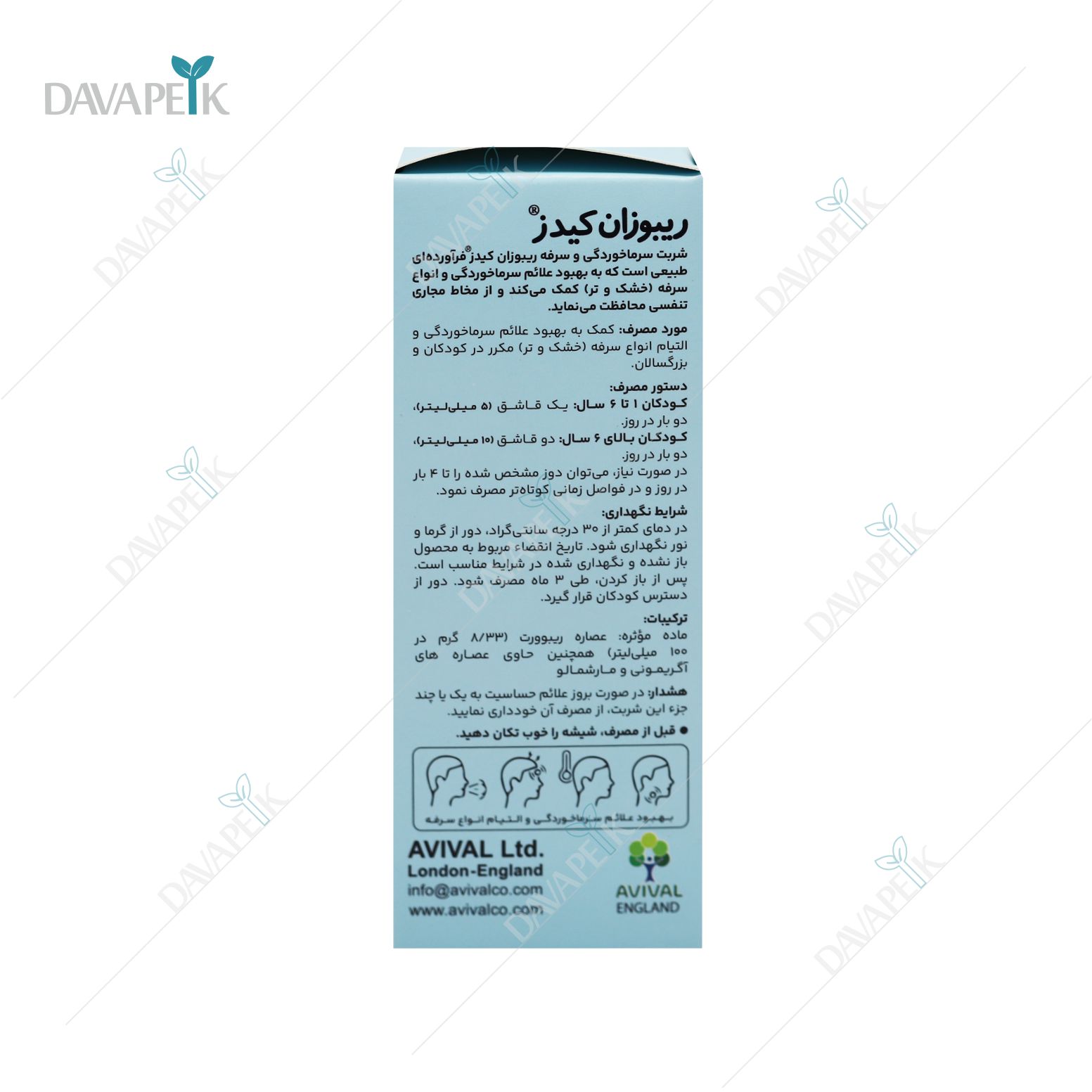ریبوزان آویوال شربت سرما خورگی و سرفه کودکان - Avival Ribosan Cold And Cough Kids Syrup