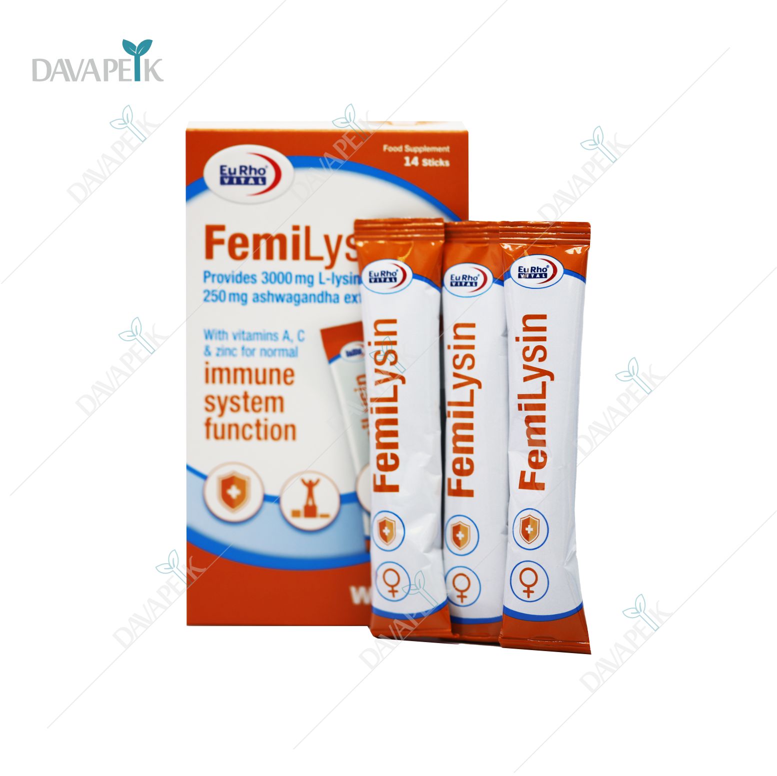 - Eurho Vital Femilysin Immune System Sachets For Women که بهدلیل استرس ، فعالیت زیاد ، تغییرات هورمونی یا ضعف سیستم ایمنی نیاز به پشتیبانی تغذیهای دارند ، انتخابی مناسب باشد و در کنار سبک زندگی سالم ، نقش مؤثری در حفظ شادابی و توان جسمی ایفا کند.