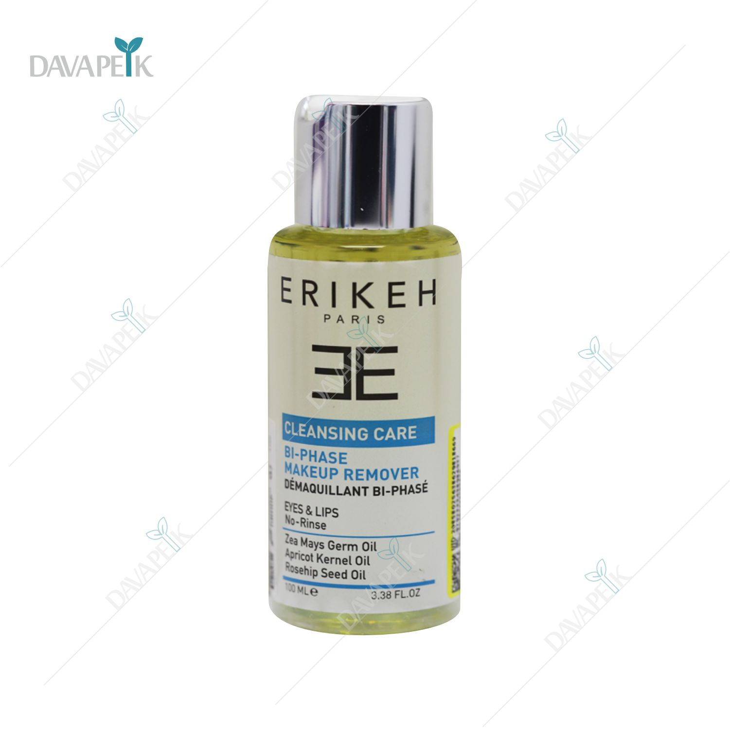 - Erikeh Cleansing Bi Phase Make Up Remover مناسب برای پاک کردن چشم ها و لب ها بدون ایجاد خشکی روی سطح پوست می شود.