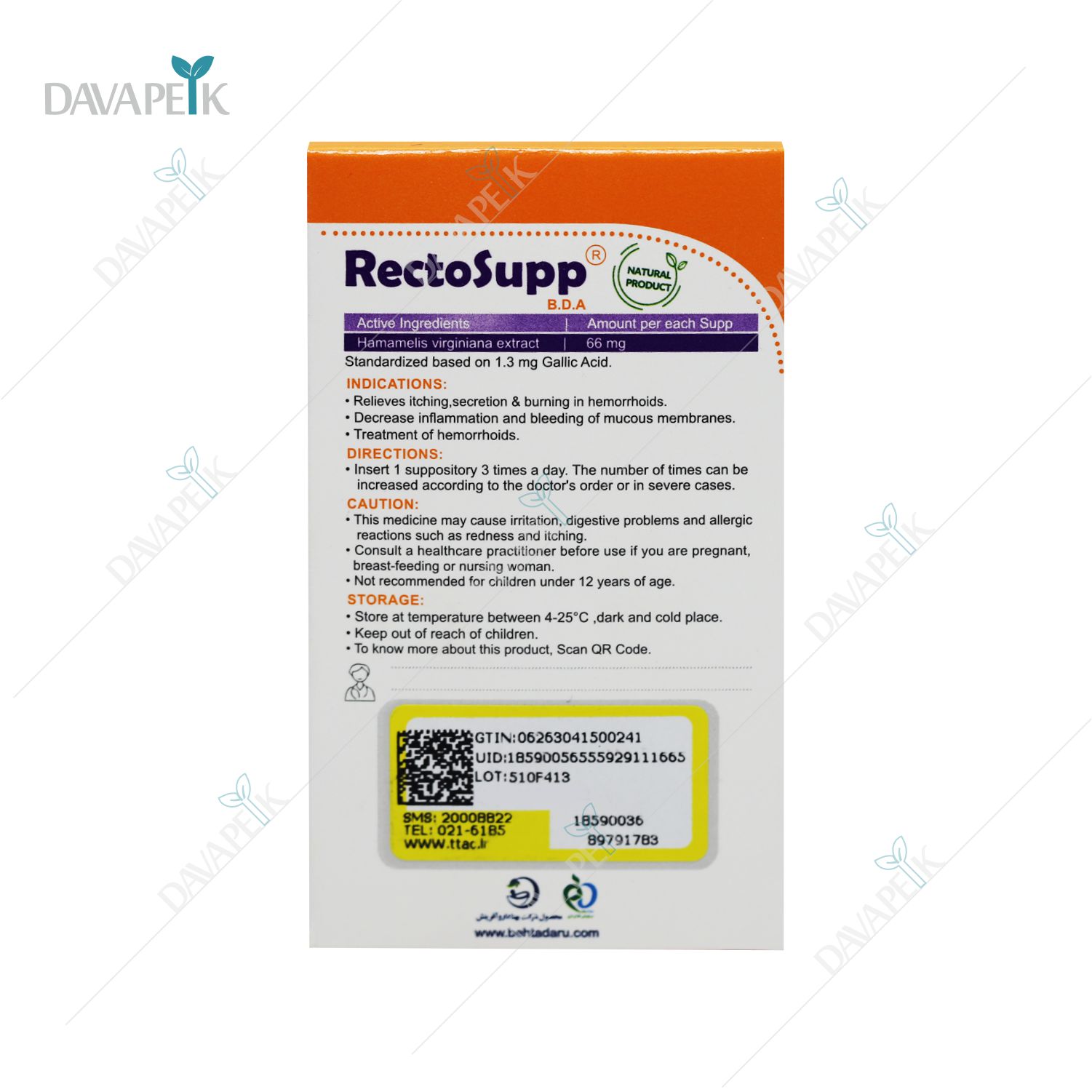 - Behta Darou BDA Rectosupp Anti Hemorrhoid Supp باعث از بین رفتن التهابات و درد در ناحیه می شود.