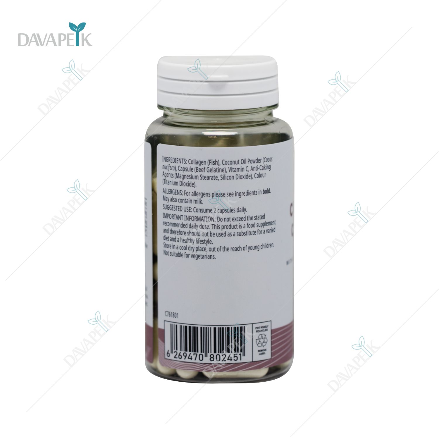 - My Vitamins Beauty Coconut Collagen + Capsules با افزایش الاستیک بافت پوست باعث سفت تر شدن و درخشان تر شدن و همچنین تقویت پوست ، مو و ناخن می شود.