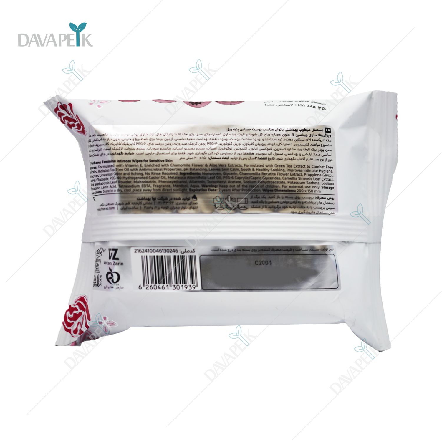 - دستمال مرطوب بهداشتی بانوان پنبه ریز حاوی ویتامین E ، عصاره گل بابونه و آلوئه ورا بوده که برای پوست حساس گزینه خیلی خوبی می باشد.
