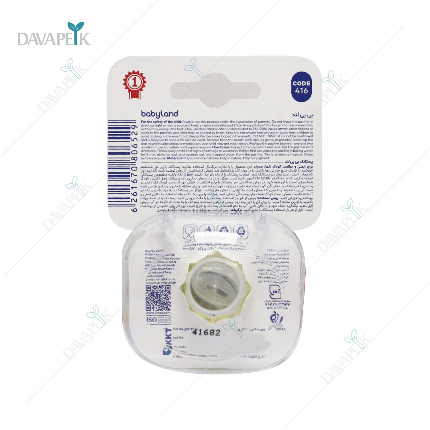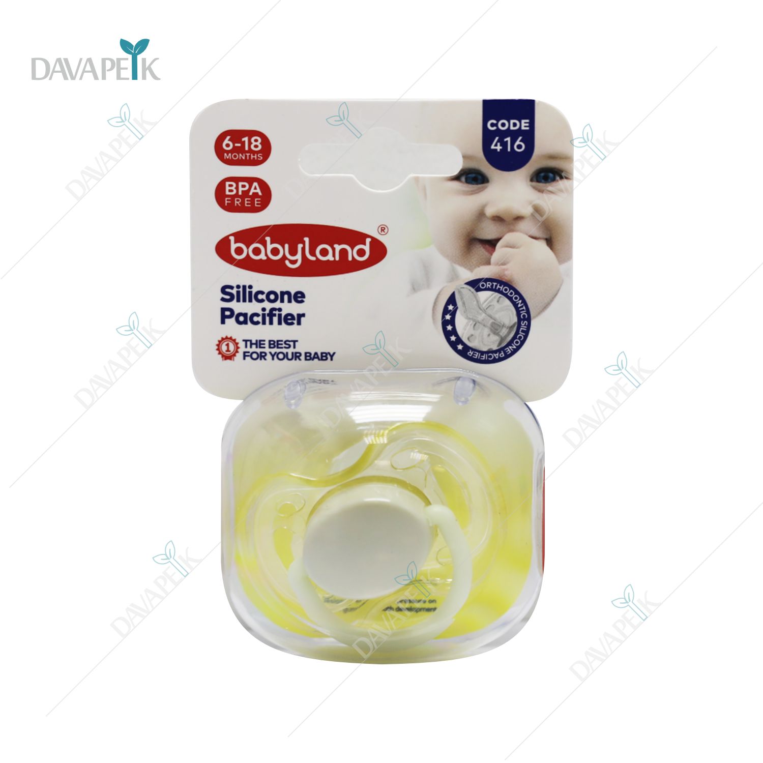 - Baby Land Silicone Pacifier 6-18 Mounths با سری سیلیکونی نرم و طراحی استاندارد برای حفظ فرم طبیعی فک و آرامش کودک می باشد.