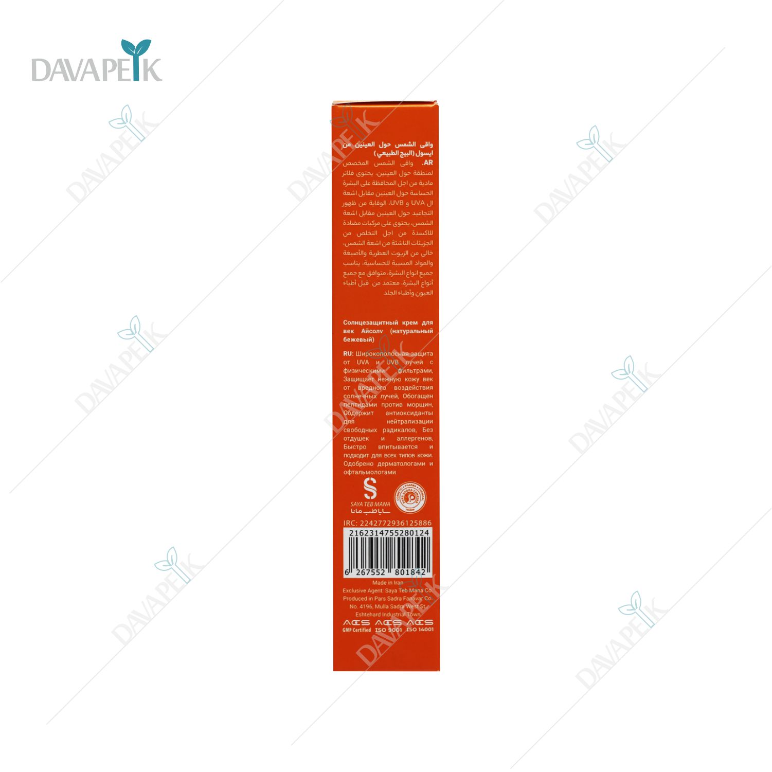 - ضدآفتاب رنگی دور چشم آیسول با رنگ بژ طبیعی از پوست حساس دورچشم در مقابل پرتوهای UVA و UVB به خوبی محافظت می کند.