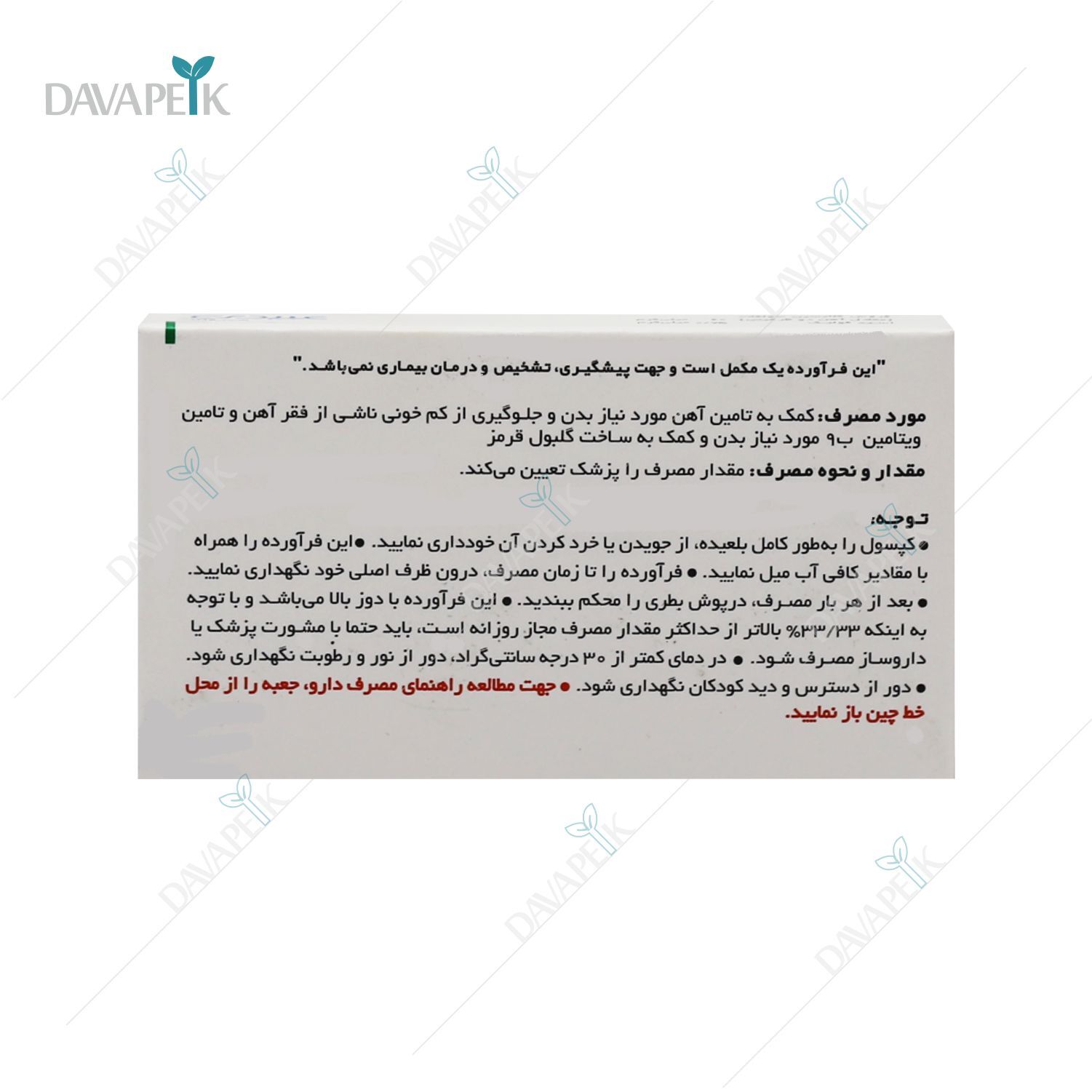 - فروس گلایسین سولفات + اسید فولیک