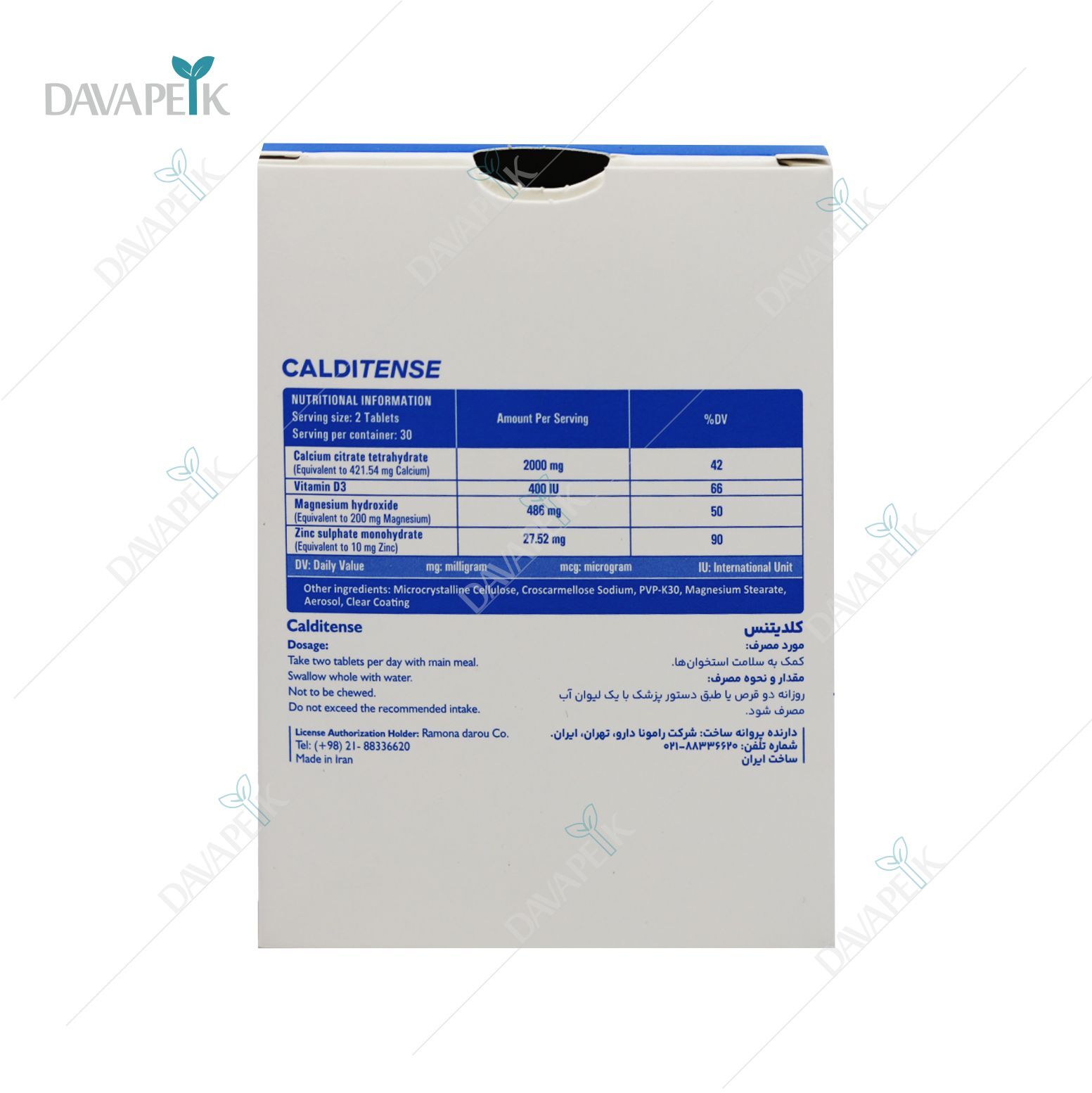 قرص کلسیم سیترات،منیزیم،زینک و د3 ویتاتنس رامونا - Vitatense Romona Calcium Citrate،Magnesium، Zinc ،D3 Tablets